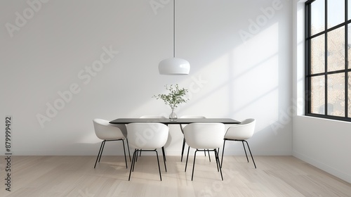 Fototapeta premium An elegant dining room with a minimalist table and chairs set against a...