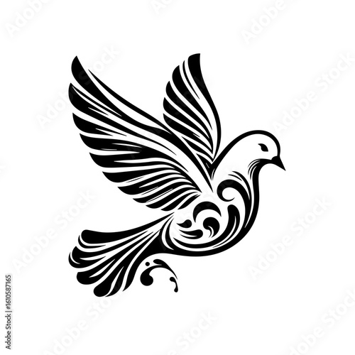 Obraz premium An elegant dove with ornate wings takes flight