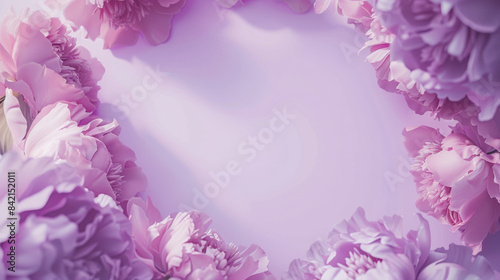 Fototapeta premium an elegant lilac purple peony floral frame, arranged delicately, on a soft lilac background