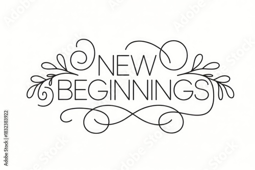 Naklejka premium An elegant monochrome design features the inspiring phrase 'NEW BEGINNINGS'...