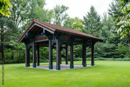 Naklejka premium An elegant pavilion in a park, designed for community events and outdoor...