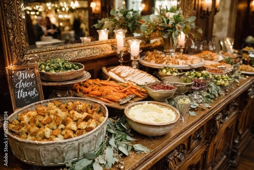 Fototapeta premium An elegant Thanksgiving buffet showcases traditional holiday dishes,...