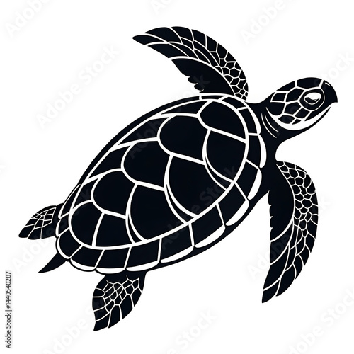 Fototapeta premium An elegant turtle silhouette icon set against a clean white background.