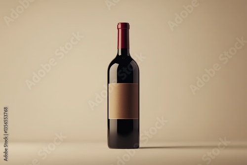 © SendalJepit, Fototapeta premium An elegantly presented bottle of dark wine with label
