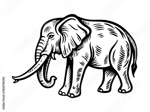© Mohsin, Fototapeta premium An elephant animal woodcut vintage style icon mascot illustration
