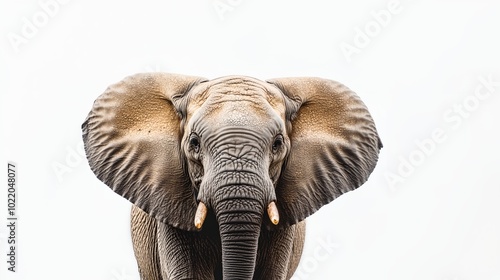 © progressman, Fototapeta premium an elephant with tusks with a white background