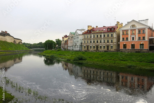© Lumatis, Fototapeta premium An elite quarter in Pskov by the river opposite the Kremlin