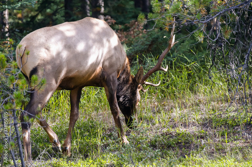© Torval Mork, Fototapeta premium An elk feeding along the highway in Jasper National Park