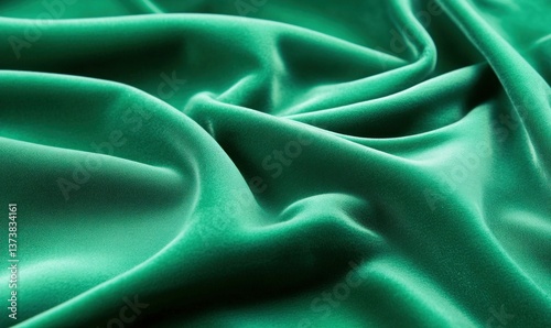 © NovaVision, Obraz premium An emerald green silk fabric gently cascades, revealing its soft texture and luxurious drape.