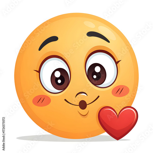 Fototapeta premium An emoji-style face blowing a kiss, isolated on a white background, symbolizing affection, love, flirty gestures,