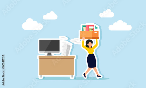 Obraz premium An employee carrying an office box walking away from a desk, illustrating an...