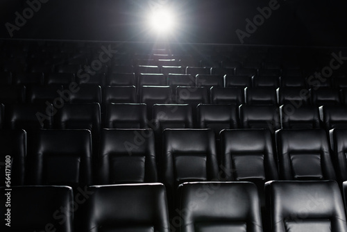 Fototapeta premium An empty cinema hall. Black stylish hall. Light from the projector