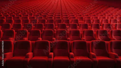 Fototapeta premium An empty cinema theater filled with red seats, presenting a neat arrangement...