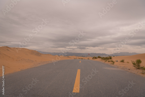 Fototapeta premium An empty highway going through the desert, Inner Mongolia, China