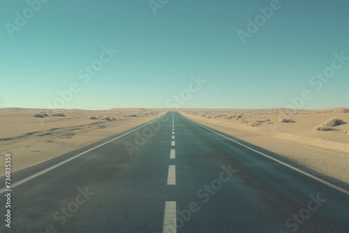 Fototapeta premium an empty highway in the desert with blue sky. empty asphalt road, adventure road in desert