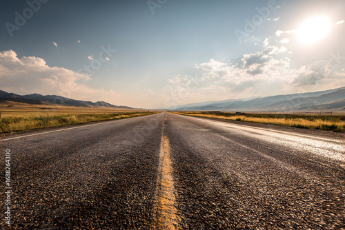 Fototapeta premium An empty open road stretching into the horizon under a bright sky, representing freedom of travel