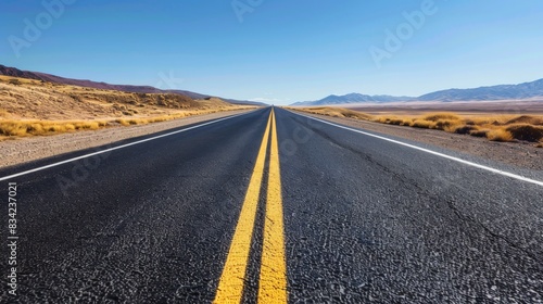 Fototapeta premium An empty, open road stretching into the horizon under a clear sky, the...