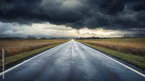 © nikola-master, Naklejka premium An empty paved road, a dramatic photo