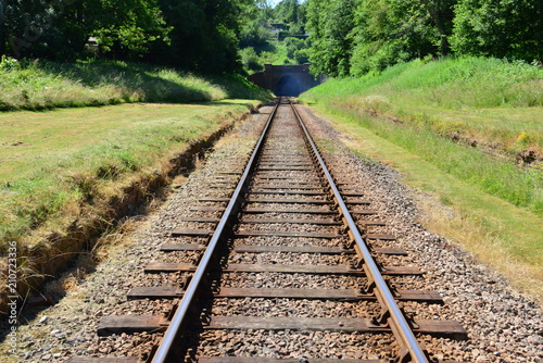 © paulbriden, Fototapeta premium An empty railway line in West Sussex