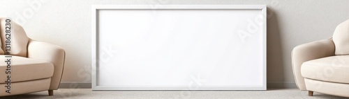 © taweesak, Obraz premium An empty rectangular frame mockup in white