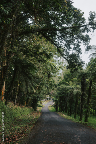 Fototapeta premium An empty road in the middle of a forest park