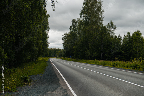 © Павел Чигирь, Fototapeta premium An empty road in the mountains at sunset