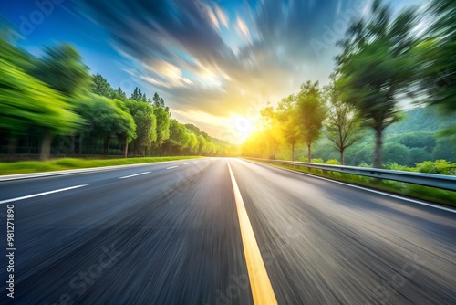 Naklejka premium An empty road is depicted with a blurred background to convey motion. AI...