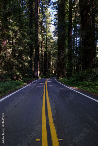 © Cavan, Obraz premium An empty road winds through tall trees.