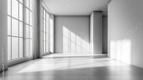 © Ruhi, Fototapeta premium An Empty Room Captured in Black and White 3d render illustration. 3D Illustration