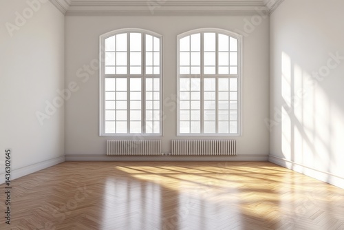 © Alexei, Obraz premium An empty room with beautiful hardwood floors and a large window