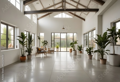Obraz premium an empty room with plants and windows.