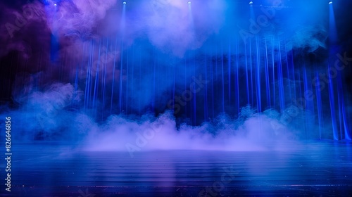 © Ailee Tian, Obraz premium An empty stage, blue and purple lighting, light smoke.