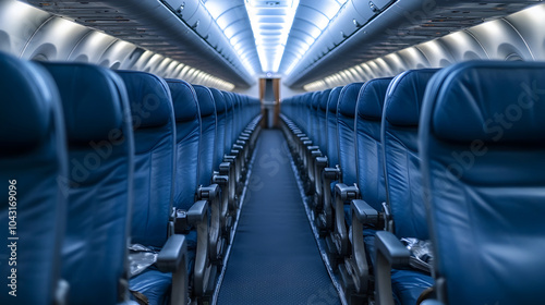 Obraz premium An Endless Row of Empty Airplane Cabin Seats Awaiting Passengers for a...