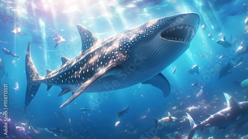 Fototapeta premium An enormous whale shark gliding through a vibrant ocean current.