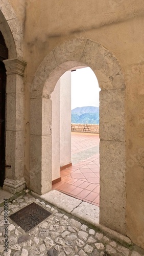 © Giambattista, Naklejka premium An entrance arch to a panoramic terrace in Guardia Sanframondi, an ancient town in the province of Benevento, Italy.
