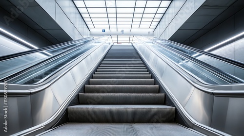 © Galib, Fototapeta premium An escalator leading upwards in a modern building.