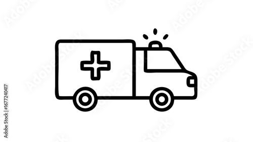 © adnan, Fototapeta premium An essential black outline icon depicting an ambulance with a cross symbol.