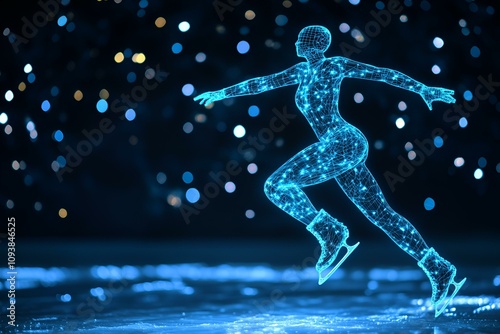 Naklejka premium An ethereal scene of a neon wireframe ice skater skilfully moving across a...