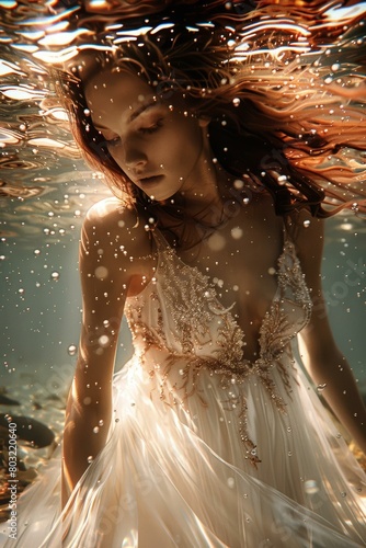 Obraz premium An ethereal underwater portrait of a woman in a white dress