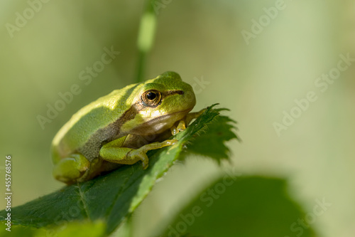 © Ronny, Naklejka premium an european tree frog sit on a green leaf