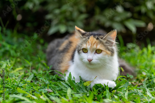 © Tamba, Fototapeta premium An exotic cat playing in the backyard.