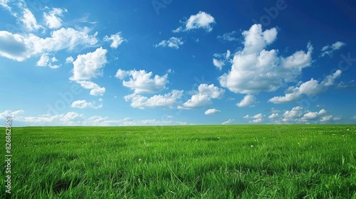 Obraz premium An expansive field of grass with a bright blue sky and fluffy white clouds...