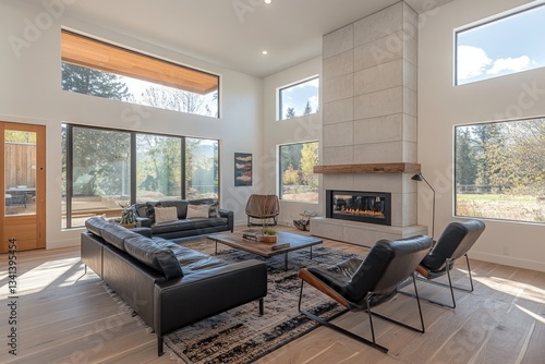 © bejo, Fototapeta premium An expansive modern living room with a beautiful natural view