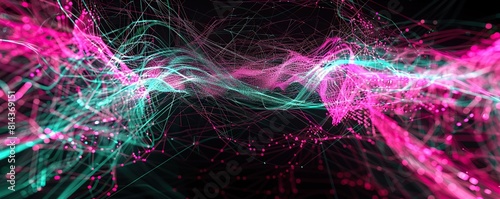 © Nasreen, Obraz premium An expansive view of electric pink and turquoise lines weaving a dynamic plexus over a black background
