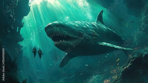 Fototapeta premium An expedition into the deep ocean, where explorers encounter the mysterious creatures of the animal kingdom.