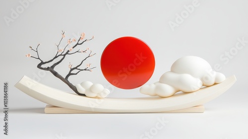 Fototapeta premium An exquisite display of soft sculptures that blend a radiant red sun with...