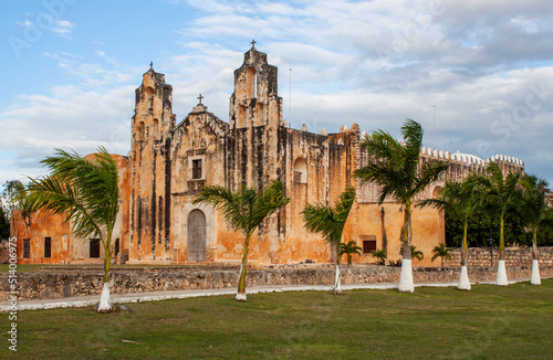 © Daniel, Obraz premium An exterior view of the historical Church and Convent of San Miguel Arcangel in Maní, in the central region of the Yucatan Peninsula, in the Mexican state of Yucatán, Mexico. It was built in 1549.