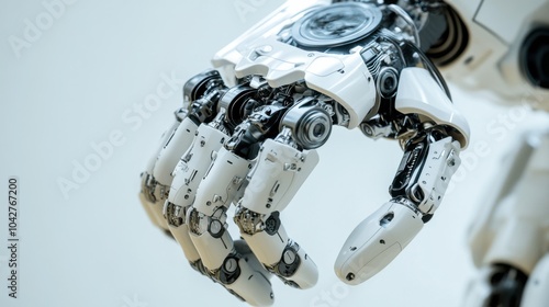 Fototapeta premium An extreme close-up of a humanoid robot's modular limb actuators, showcasing precise movement and adaptive control capabilities, Robotics technology style