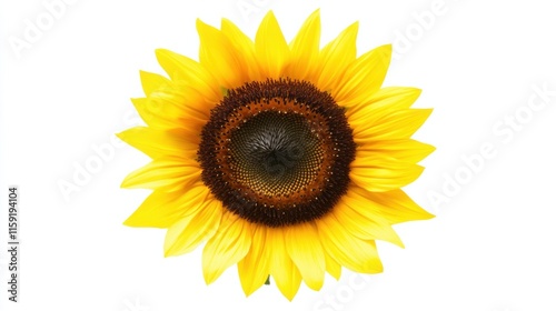 © ArpPSIqee, Fototapeta premium An extreme close-up of a sunflower's dark brown center surrounded by golden petals, isolated white background, minimalistic art style
