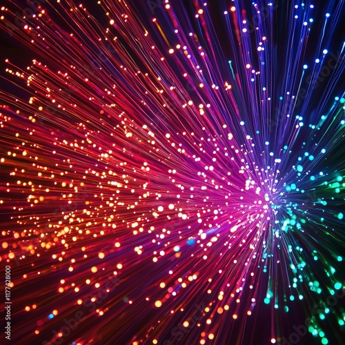 © StockUp, Naklejka premium An eye-catching display of vibrant light strings in various colors radiating from a central point.